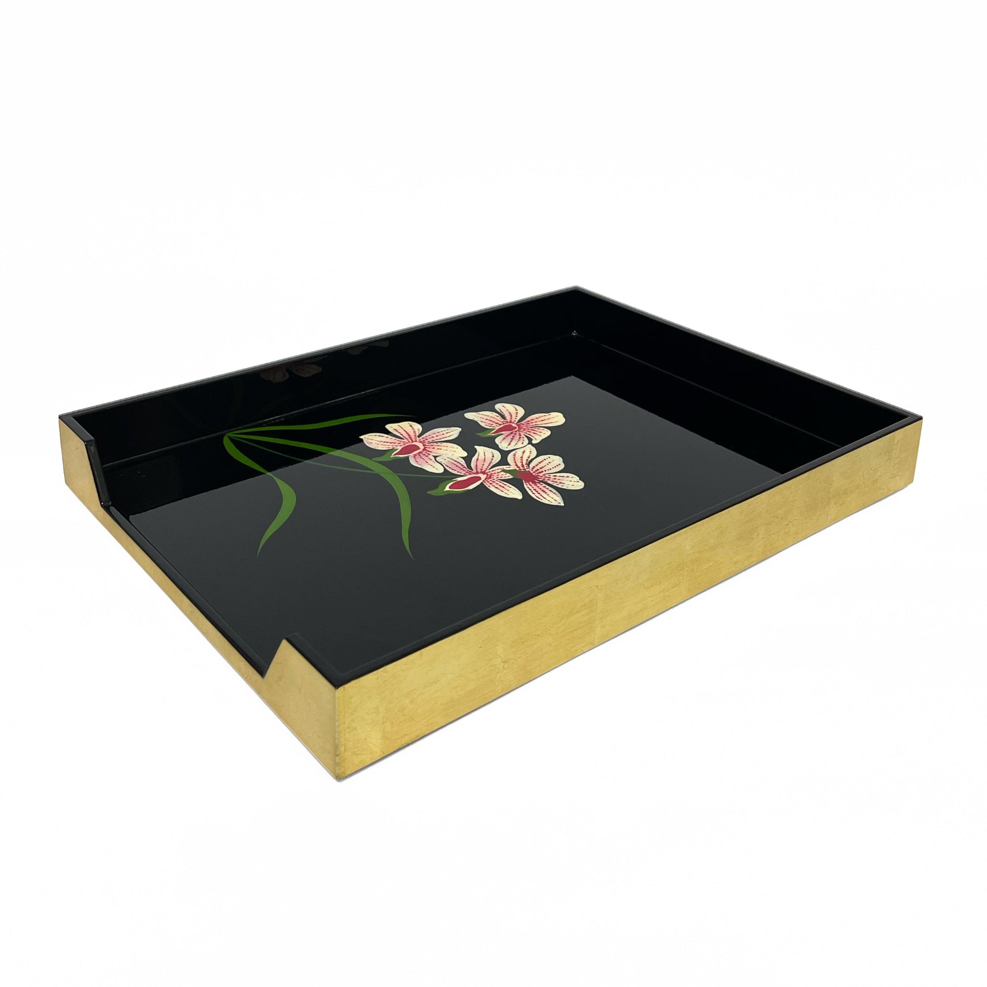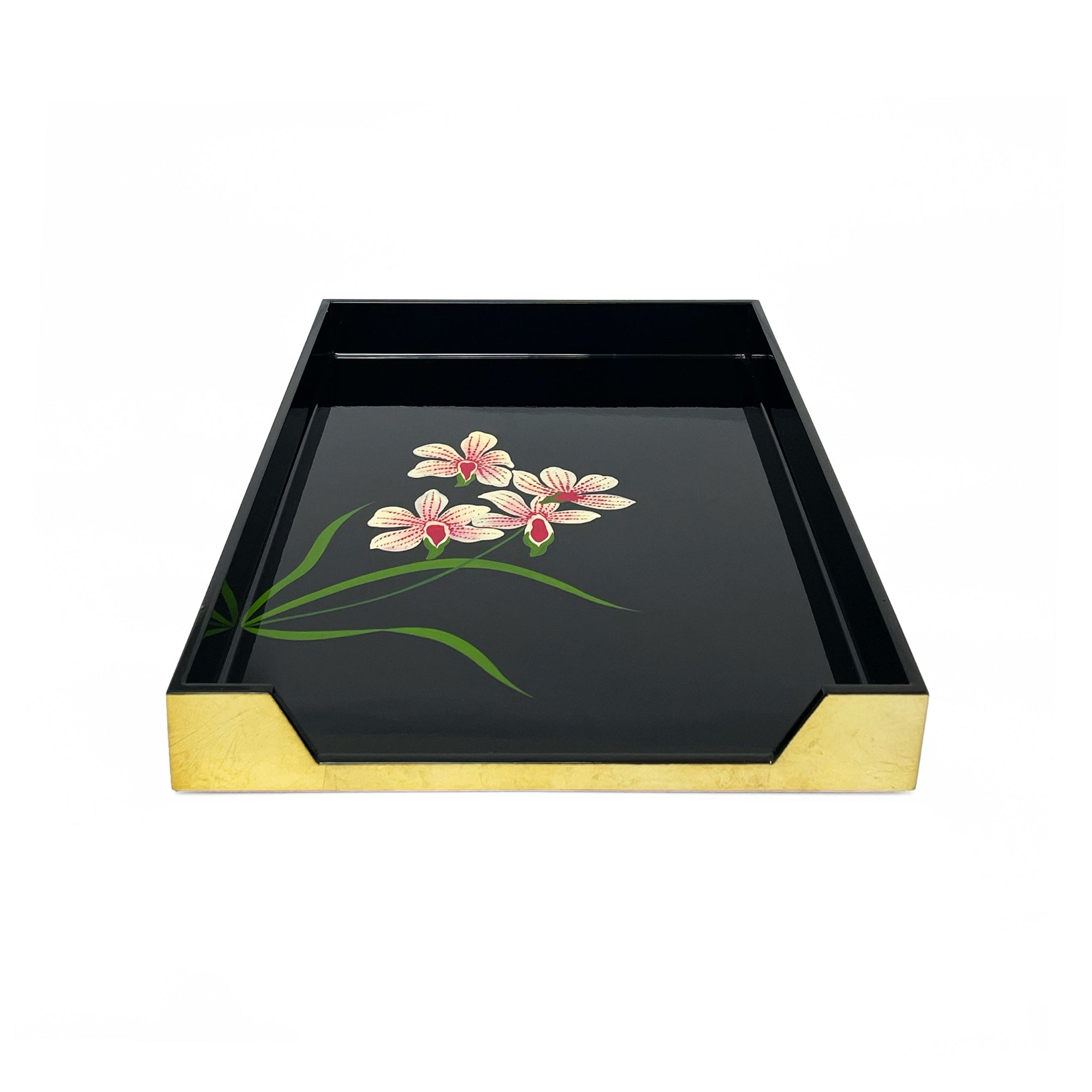 The Orchid Collection distills the quiet grace of orchids into lustrous lacquerware. Designed in-house — every leaf, stalk, and bloom are meticulously handpainted by our artisans. From tea boxes to in-trays and business card boxes, these pieces bring a luxuriant, refined presence to desks, consoles, and living spaces.