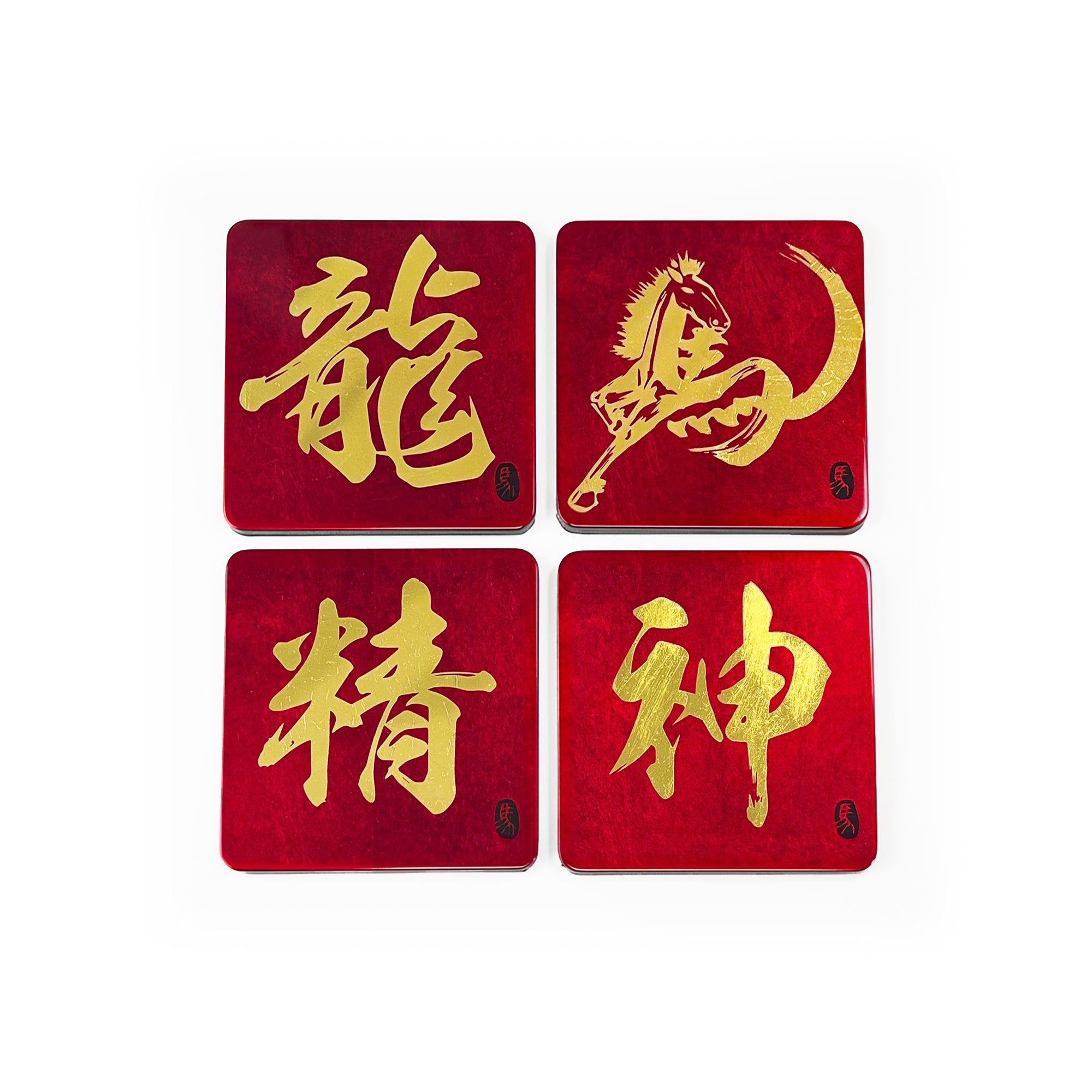 Each design combines calligraphic brushwork in gold leaf with lustrous red lacquer finish, capturing the spirited energy and graceful momentum of the horse in full stride. With the blessing 龍馬精神 (lóng mǎ jīng shén), wishing a year filled with enduring health and boundless energy. Embrace the galloping pulse of the Lunar New Year in style and let every moment shine. Perfect for spring celebrations, these vibrant accents bring warmth, vitality, and a dash of tradition to festive gatherings.
