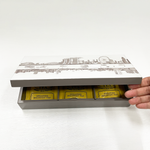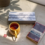 Qua presents the Tea Box from the Arts & Disability Singapore (ART:DIS Singapore) River Tales Collection. The detailed, intricate linework of Singapore's modern landscape and glimpses of the old landscapes is a reflection of Singapore's transformation. The tea box is an elegantly designed container that houses a curated selection of fine teas, offering a delightful and soothing beverage experience.