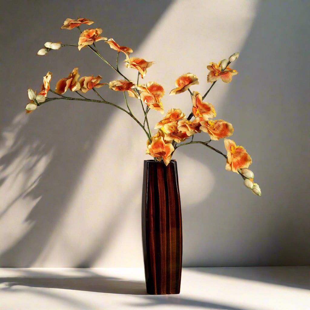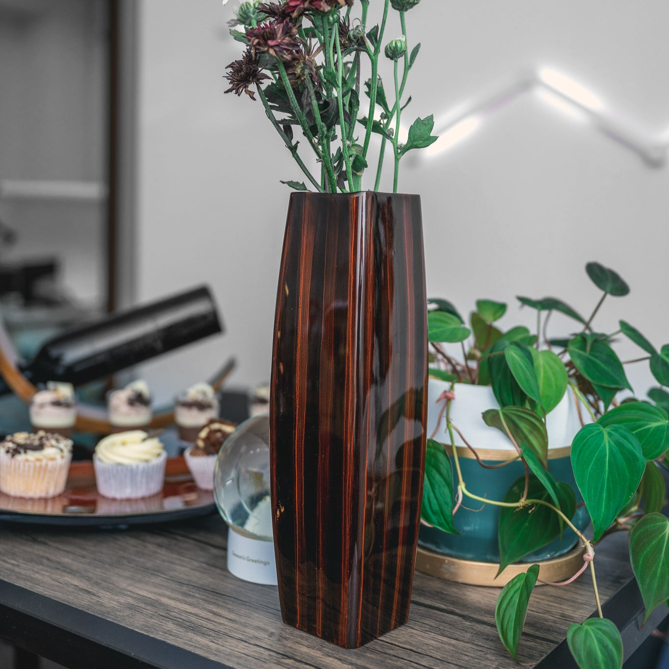 Discover our exquisite vases, handcrafted with layers of glossy lacquer for a smooth, elegant finish.  The perfect piece to elevate your decor and display your flowers beautifully,  each vase showcases traditional artistry and adds timeless sophistication to any room.