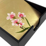 The Orchid Collection distills the quiet grace of orchids into lustrous lacquerware. Designed in-house — every leaf, stalk, and bloom are meticulously handpainted by our artisans. From tea boxes to in-trays and business card boxes, these pieces bring a luxuriant, refined presence to desks, consoles, and living spaces — thoughtful gifts for overseas visitors and corporate partners.