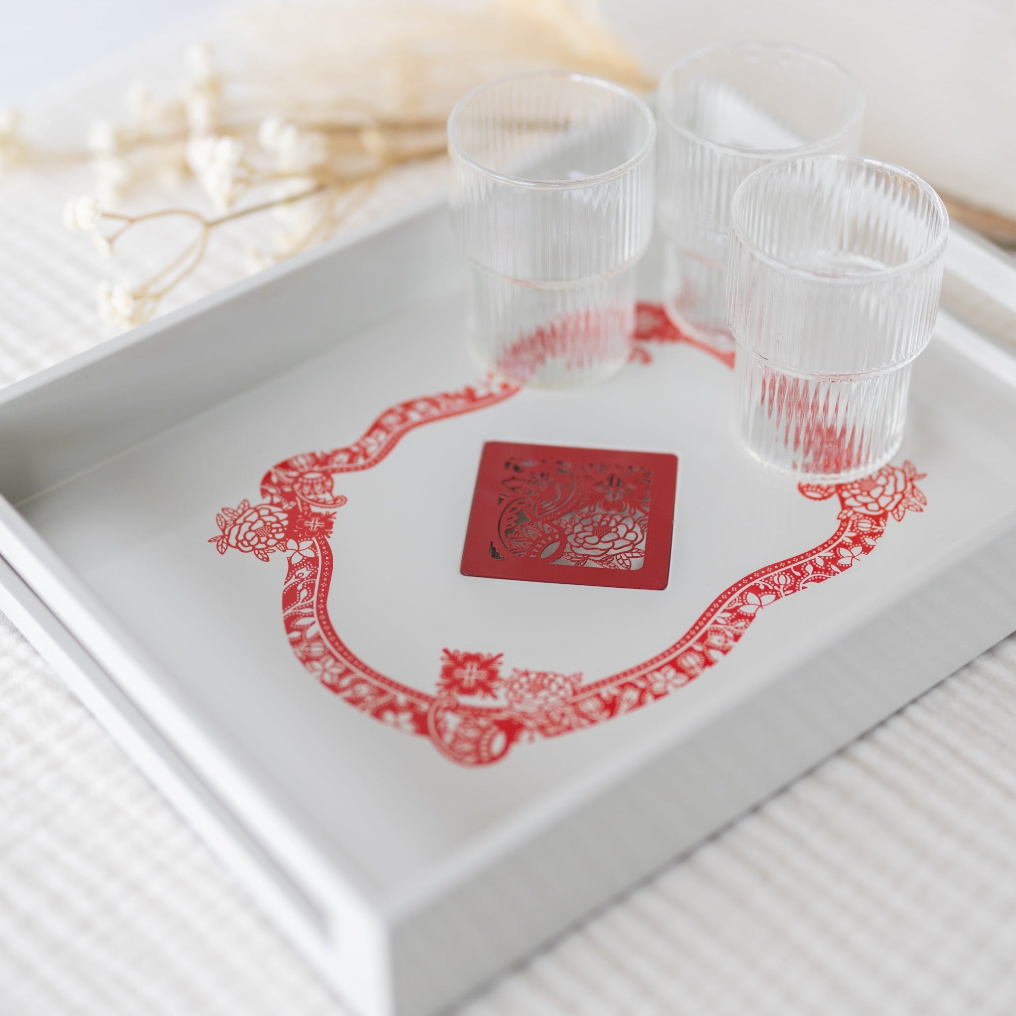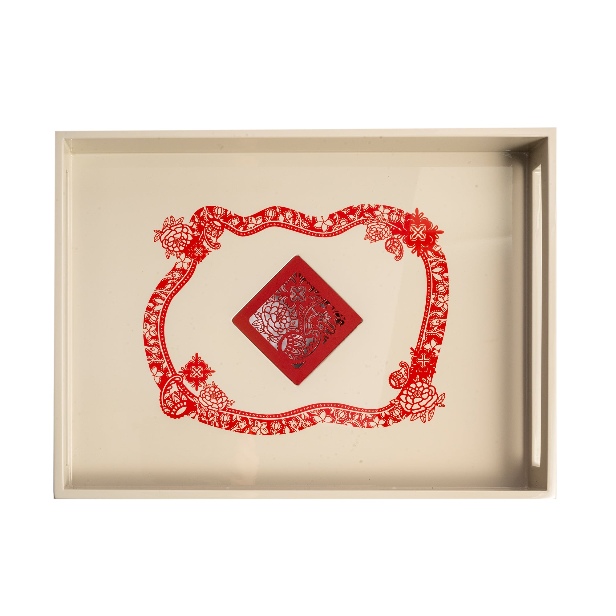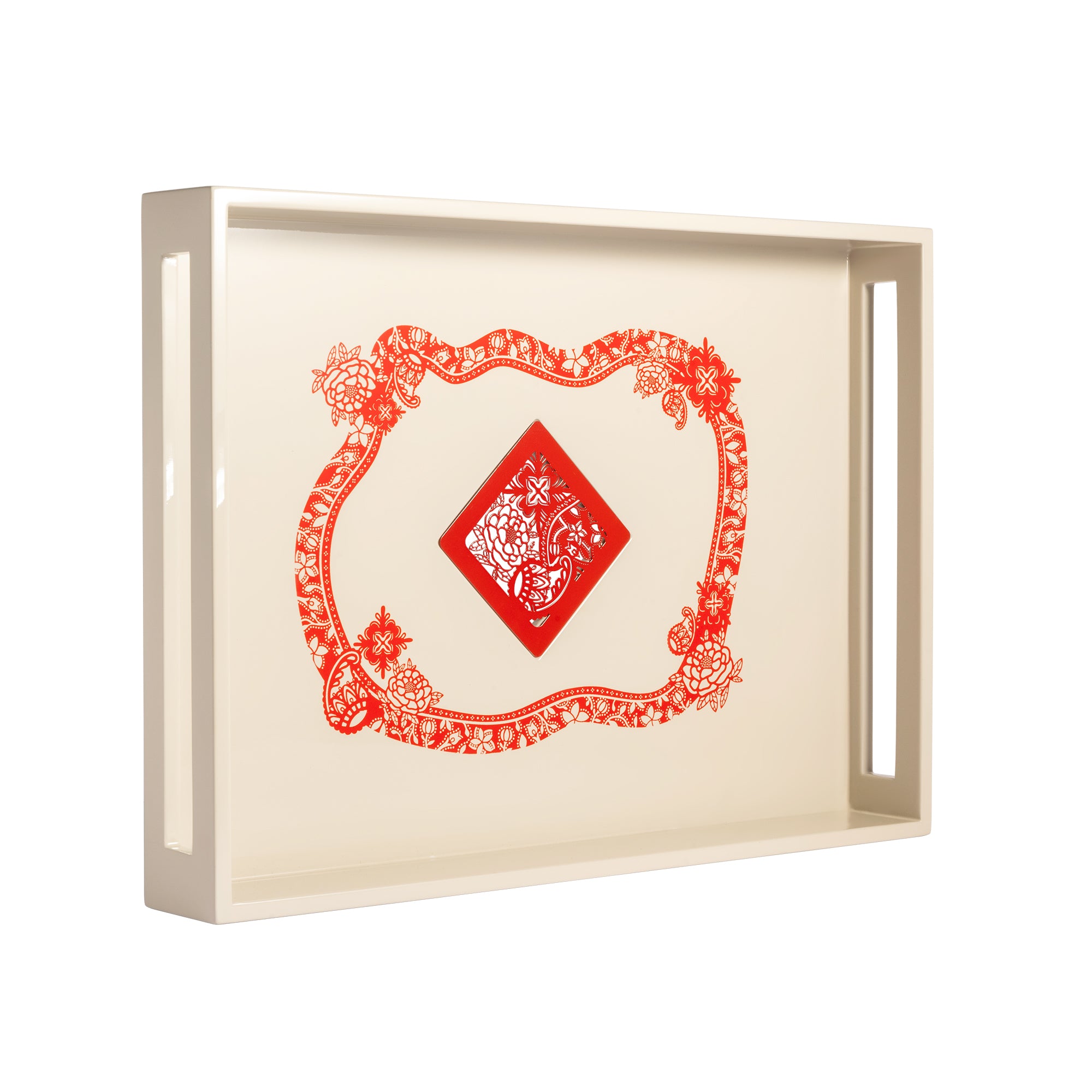 The Harmony Tapestry is a tribute to Singapore’s 60th birthday this 2025, celebrating six decades of resilience, progress, and unity. The intricate motif reflects the rich cultural tapestry that defines our nation, drawing inspiration from the diverse ethnic groups that have shaped Singapore. A beautiful lacquer serving tray, seamlessly blending function and elegance, perfect for elevating everyday moments and special gatherings.
