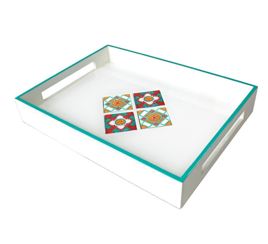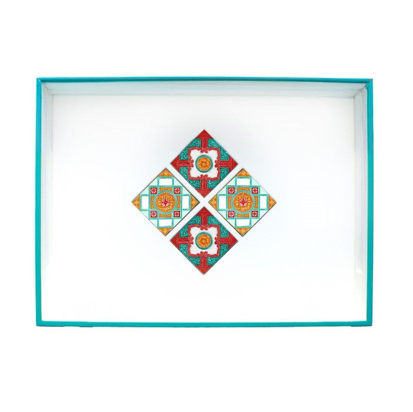 Qua presents the Serving Tray from the Ivory Nyonya collection. This collection showcases the rich heritage of Peranakan culture, bringing back memories of the past with the bright and colourful tiles incorporated into the products, serving as the perfect housewarming gift. This serving tray can even be used as a temporary mini table for meals off the table.