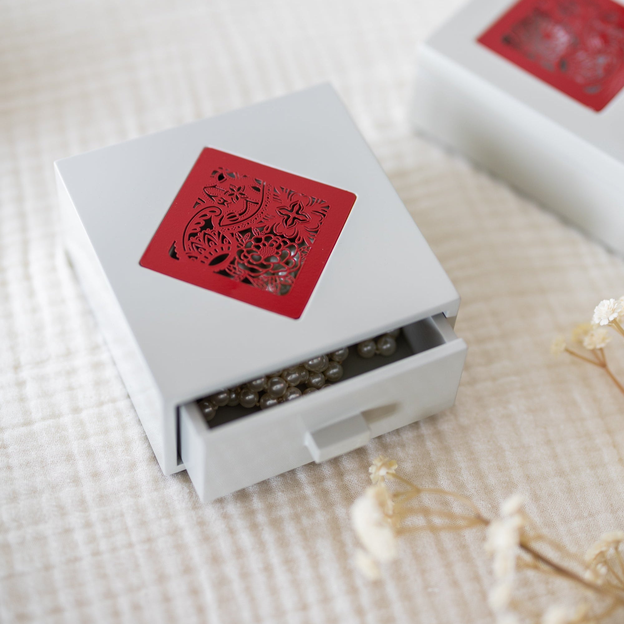 The Harmony Tapestry is a tribute to Singapore’s 60th birthday this 2025, celebrating six decades of resilience, progress, and unity. The intricate motif reflects the rich cultural tapestry that defines our nation, drawing inspiration from the diverse ethnic groups that have shaped Singapore. This beautiful box serves as an organiser for fancy jewellery and miscellaneous pieces, and is the perfect Singapore corporate gift and souvenir.